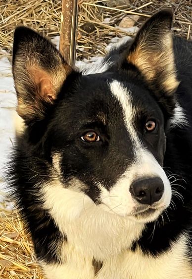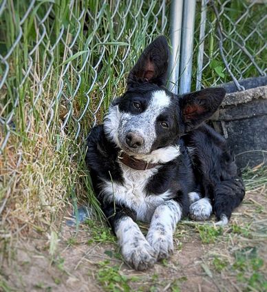 SOLD - CBCA# 22357 is a smooth coat black and white ticked female born on Feb 11, 2024. Her mother is Wendy Schmaltz's Gyp who is a daughter of her Ky and Floss. Ky is a son of Scott's Don (Tim) who was a Canadian Champion and 2 time USBCHA National Champion and is a son of Stineman's Star, a 3 time USBCHA Champion. Ky's mother was Wendy's Gin the 2010 All Around Stockdog. Floss is a daughter of Canadian Champion Clive, handled by Amanda Milliken and is a son of International Champion, Star.